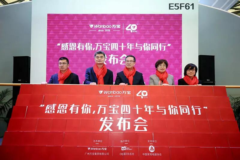 09 Mar,2018 3月9日,广州万宝集团“感恩有你,万宝四十年与你同行”发布会在全球三大家电及消费电子展之一的2018中国家电及消费电子博览会(Appliance & Electronics World Expo,简称AWE)上举行。中国家用电器协会理事长姜风、中国机电产品进出口商会副会长王贵清、中国家用电器协会副理事长王雷以及万宝集团的代表、客户和战略合作伙伴等出席了此次发布会,发布会包含两项内容:一是宣告万宝将瞄准工业4.0这个全新的目标开始新的征程;二是万宝将在中国家电消费转型升级的大趋势下,继续坚守匠心品质,时刻关注用户需求,用更加具有“品质”与“智慧”的“匠心之作”来回馈消费者的厚爱。花椒、京东等直播平台实时直播发布会盛况,近30万人在线观看!